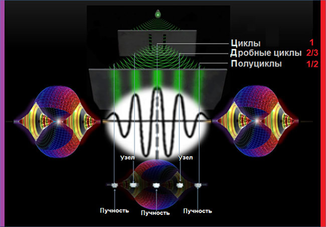 При этом пучности стоячих волн (циклы и полуциклы) будут соответствовать максимумам интерференции, а узлы стоячих волн (дробные циклы) будут соответствовать минимумам интерференции.
