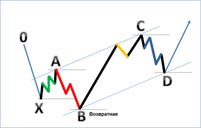 Однако он, как мы видим, все-таки обновил минимум, после чего начался рост. Именно поэтому этот красный зигзаг +X стал возвратной волной.