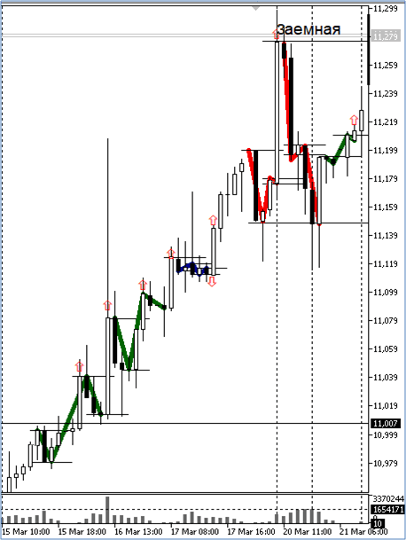 В общем, здесь я привел примеры некоторых вариантов заемно-возвратных волн. Все их описывать смысла нет, так как встречаются они достаточно часто, поэтому в торговом дневнике о них будет еще много упоминаний.