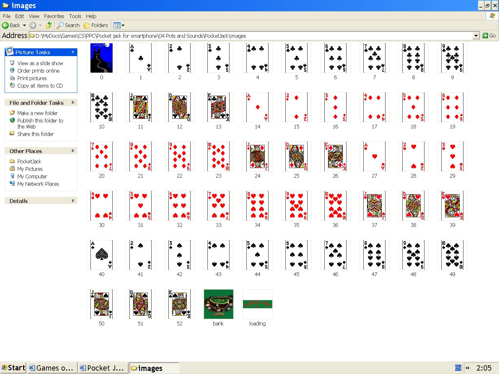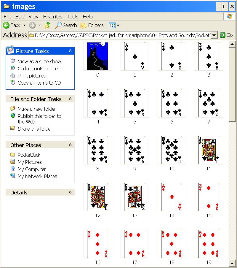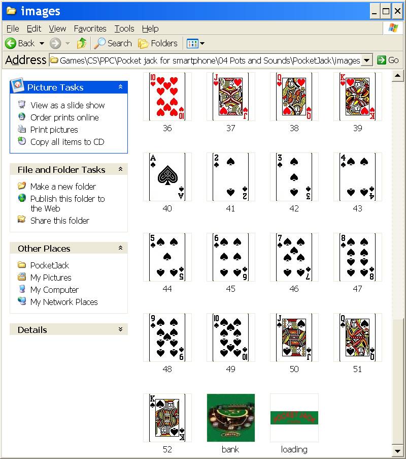 Видно, что в этом варианте проект имеет имя PocketJack, папка с файлами карт имеет имя images, а в массиве cardImages все файлы карт с именами “dispNo” должны иметь расширение (.gif).