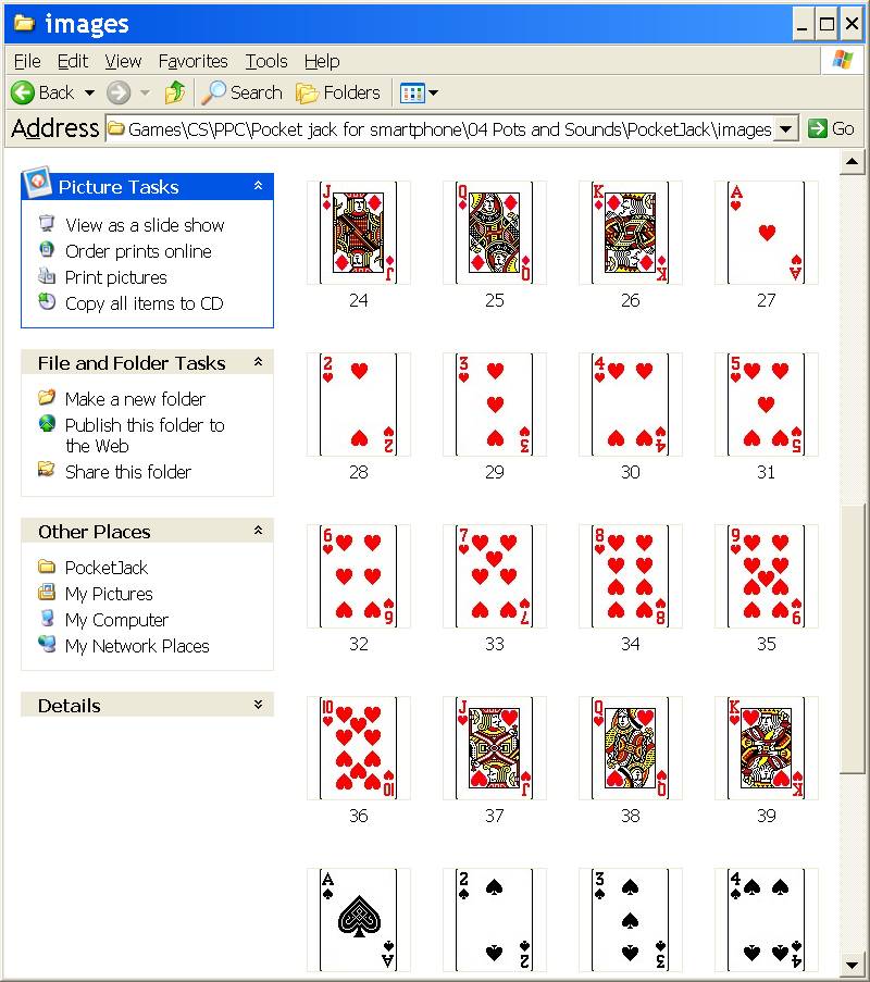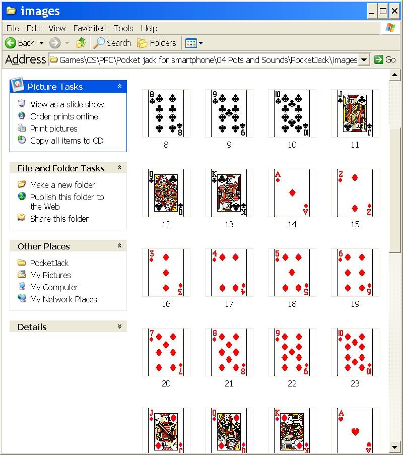 Видно, что в этом варианте проект имеет имя PocketJack, папка с файлами карт имеет имя images, а в массиве cardImages все файлы карт с именами “dispNo” должны иметь расширение (.gif).