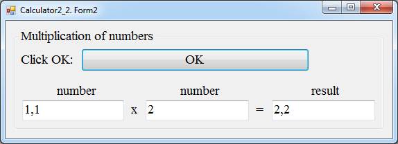2. Щёлкаем OK и на этой форме получаем результат умножения уже других чисел.