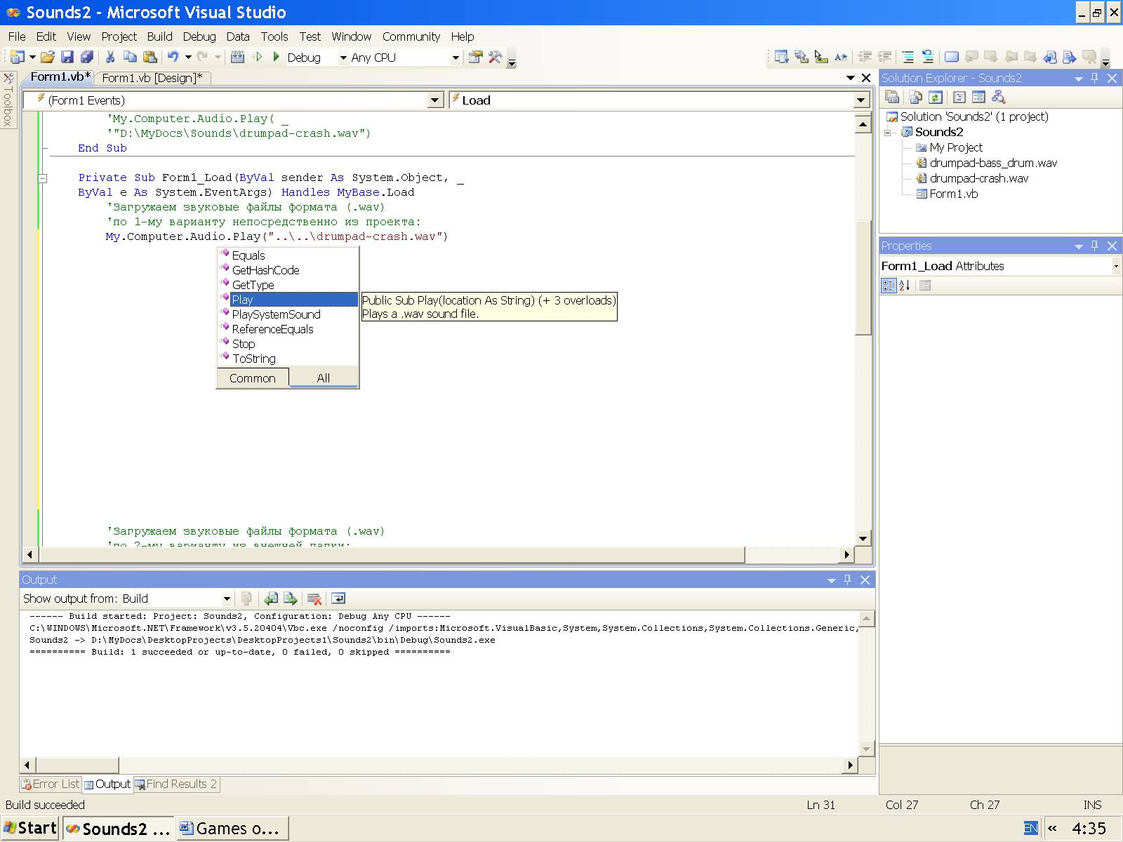 мы используем пространство имён My, свойство Computer, свойство Audio и метод Play (рис. 6.2).