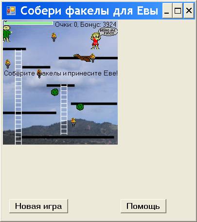 2. Через несколько секунд поясняющая надпись “Соберите факелы и принесите Еве” исчезает (чтобы не заслонять игровое поле).