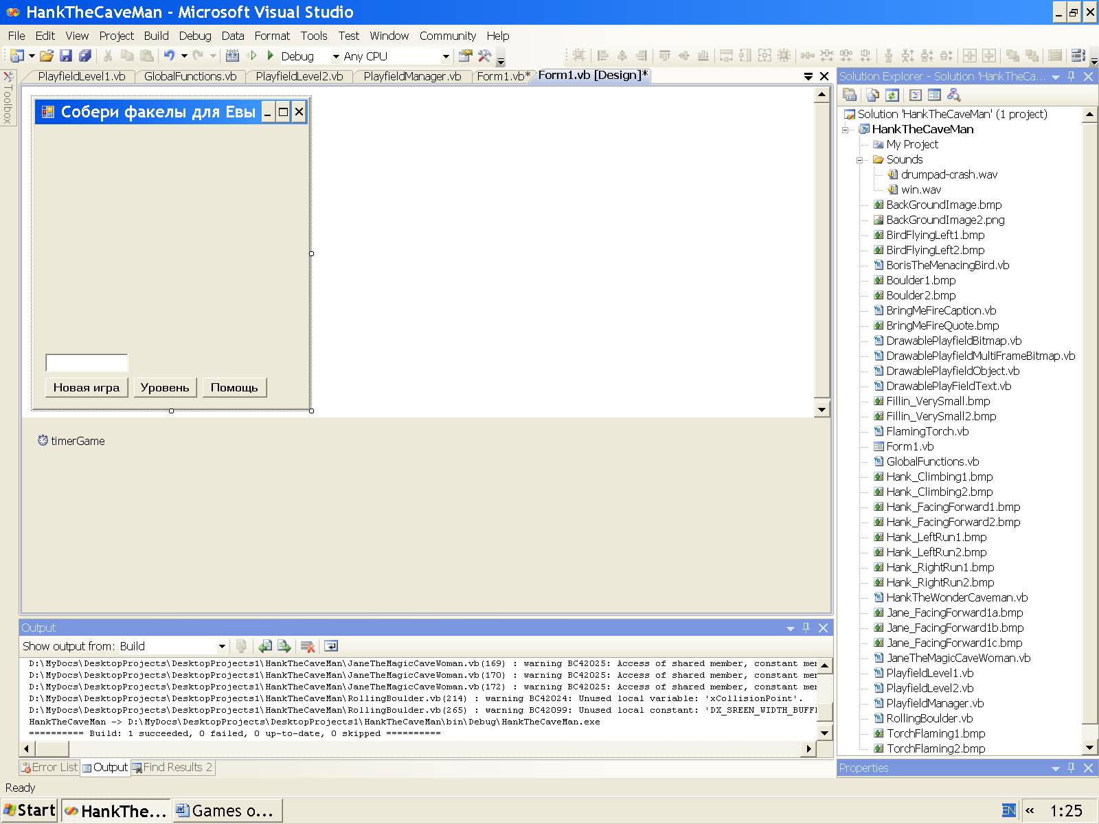 Данную игру мы будем разрабатывать, следуя проекту в заархивированном виде CaveManHank.zip (Пещерный человек Хэнк) автора Ivo Salmre от 27.6.2002 с сайта gotdotnet.com для устаревшей версии Visual Studio, причём, для карманного компьютера (КПК), но с нашими усовершенствованиями для современной версии Visual Studio, причём для настольного компьютера или планшета.