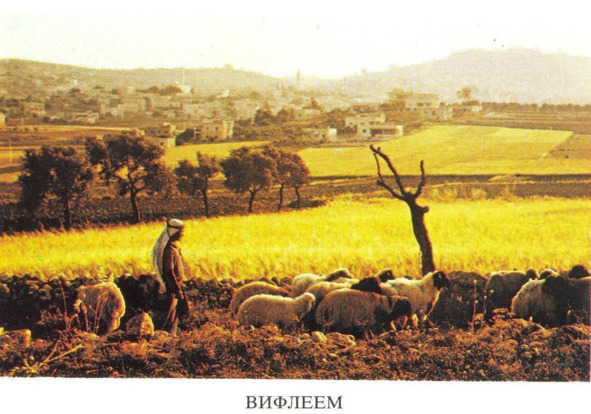 Рано утром молодые супруги отправились в Вифлеем, куда и прибыли уже после полудня. Гостиница была переполнена, как и все помещения в городе. Для приема постояльцев хозяин гостиницы даже распорядился освободить и вычистить караванные стойла, высеченные в склоне скалы и находившиеся прямо под гостиницей. К счастью, одно место оказалось незанятым. Оставив осла во дворе, Иосиф взвалил на себя корзины с припасами, и вместе с Марией спустился по каменным ступеням в их нижнюю обитель. Они оказались в бывшем хранилище для зерна, находившемся перед конюшней и яслями. Здесь была повешена шатровая занавесь, и они остались довольны, что им досталось такое удобное помещение.
