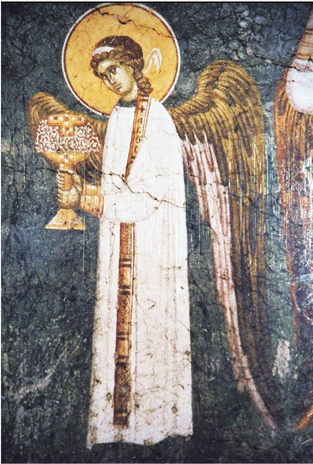 Ангел с чашей. Фрагмент фрески «Небесная литургия». Монастырь Грачаница, Сербия