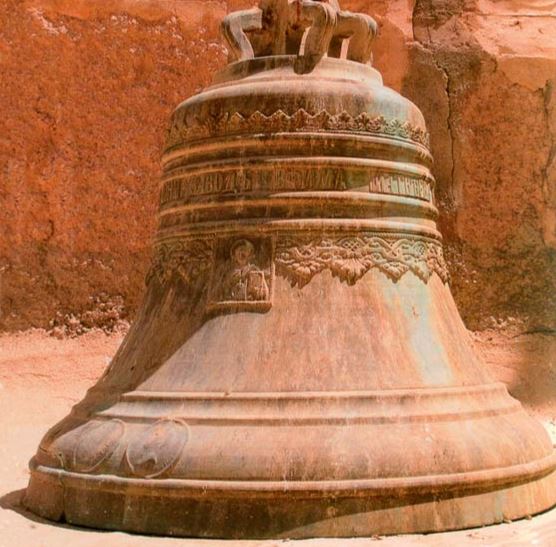 Пока я поднималась по лестнице на верхний ярус, что-то знакомое улавливалось боковым зрением, и переведя взгляд из горной дали на ближайший предмет, я обнаружила старинный русский шрифт по краю колокола: «…усердием Павлы Ивановны». Обойдя по кругу огромный бронзовый позеленевший колокол, прочитала и всю строку: «Вылит сей колокол в Москве на заводе Димитрия Самгина. Весу 24 пуда». И ниже, помельче: «1870 года июня 27 дня в Синайскую обитель ко храму Св. Великомученицы Екатерины усердием Павлы Ивановны Моисеевой». Другой колокол, весом в 12 пудов, отлит на том же заводе «старанием Стефана».