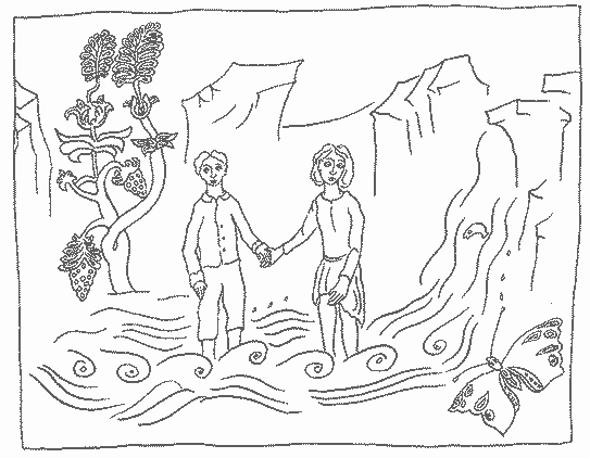 Митя прислонился спиной к камню под водопадом, сверкающие струи стекали по его голове, по плечам, рассыпались мелкими радугами. В лопухах остался подрясник и сапоги, и мальчик мой брызгался и смеялся, совсем забыв о послушническом достоинстве. А я лежала на каменистом дне, и каждая клетка кожи радовалась движению воды, ее прозрачной свежести.