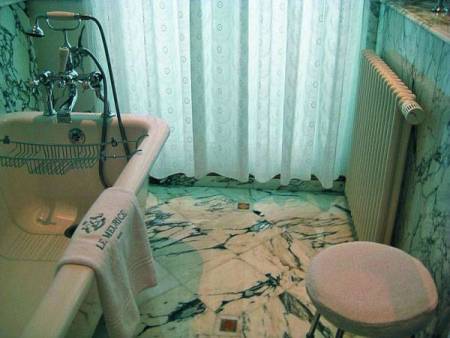 Испанский королевский дух в Le Meurice затрагивает не только общественные территории – фойе, лобби, ресторан, огромный зал для завтраков. Например, обычная ванная комната в номере может быть прочитана как истинный французский будуар. В пользу этого свидетельствуют отдельный столик-трюмо для косметических процедур и ванна на ножках, стоящая посреди комнаты. Но столики-трюмо со старыми зеркалами, на шатких закрученных ножках – это и испанский штрих. Как и ванна, в которую вполне укладывается герцогиня Альба, по легенде, позировавшая Франсиско Гойе для «Махи обнаженной».
