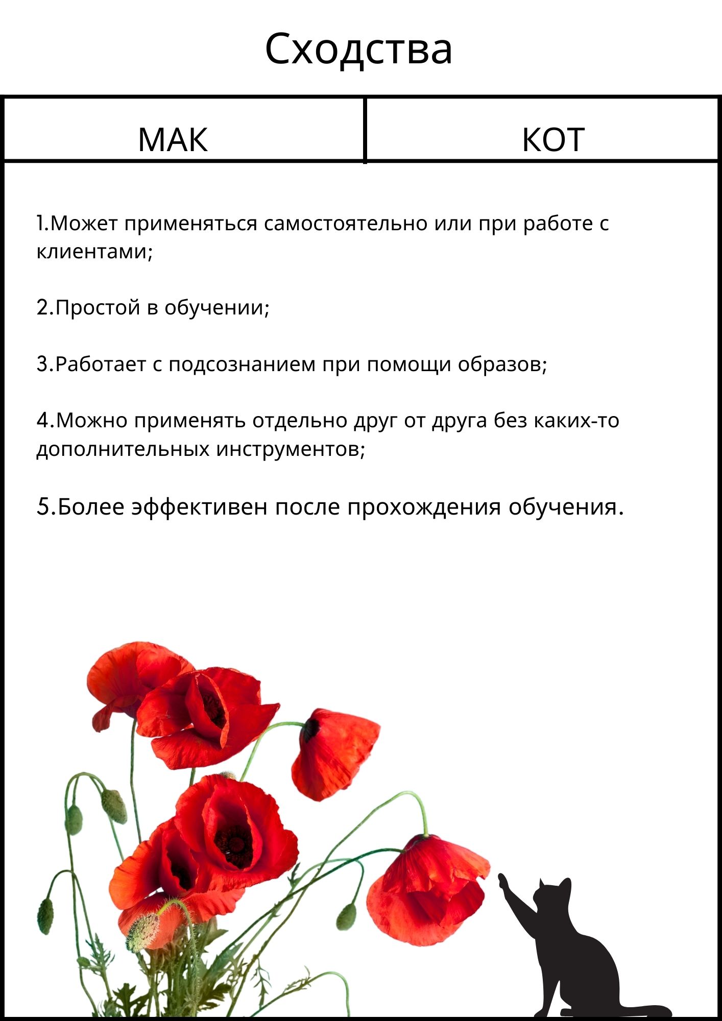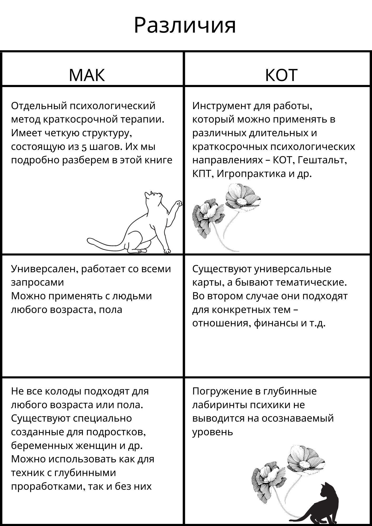 Прежде чем начать, посмотрите внимательно на таблицу. Она поможет разобраться, чем метафорические карты похожи и чем отличаются от когнитивно-образной терапии: