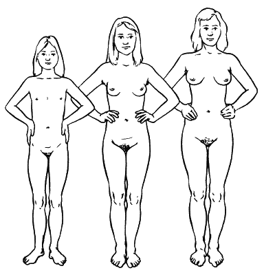 Вообще развитие идет очень быстро, и к 15 годам практически любая девушка выглядит уже вполне сформировавшейся.
