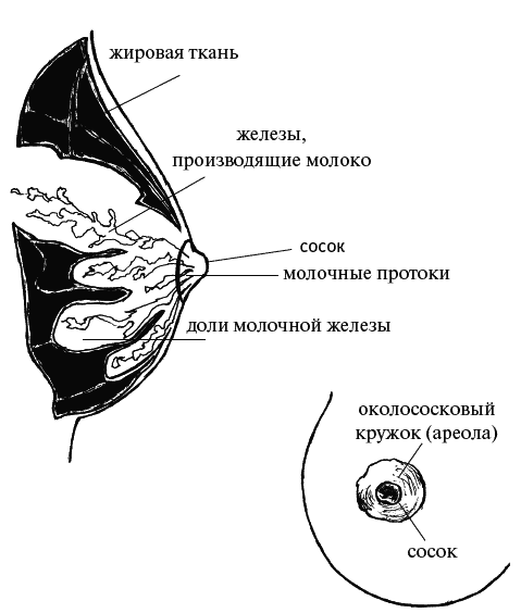 От железистых долек к соску идут протоки. Это молочные ходы, которые на верхушке соска заканчиваются крошечными отверстиями – устьями. Во время беременности в железистых дольках вырабатывается молозиво, а после родов – молоко, которое благодаря молочным протокам подходит к соску. Когда женщина дает ребенку грудь, он сосет сосок, из которого поступает молоко.