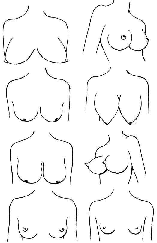 Твоя грудь, как и всех других девушек и женщин, имеет СВОЙ размер и СВОЮ форму. Для чего я тебе это говорю? Для того чтобы ты знала, что у всех у нас (девушек и женщин) грудь разная. И отличается она не только формой и размером, но и цветом и величиной сосков и ареол.