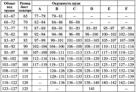 И теперь, имея в своем арсенале две цифры, просто найди их в таблице, и ты узнаешь свой размер. Например, если обхват под грудью – 74 см, а окружность груди – 90 см, то твой размер бюстгальтера – 75 В.