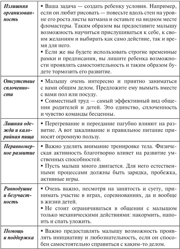 • Углубляться в каком-то одном направлении, например чтении или математике, забывая про остальные. Всестороннее развитие гораздо важнее для малыша, чем рекорд в одном из направлений.