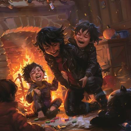 Вечером, после сытного ужина, я вслух читала книгу Тиариана – старинные легенды и предания Лунных лесов, развалившись на одеялах и подушках у камина. Малыши уснули первыми – их день был настолько наполнен впечатлениями, что они не успели дослушать даже первую сказку и синхронно засопели, раскрыв рты.