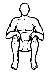 И. п.: сидя на корточках, ступни расставлены примерно на 30 см. Ладони лежат на коленях, которые тоже должны быть разведены примерно на 30 см (рис. 4).