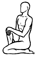 И. п.: сидя на полу, поджать под себя левую ногу, правую согнуть в колене, ступню приблизить к внутренней стороне лежащей на полу ноги. Обе руки согнуты и опираются о поднятое колено (рис. 6).