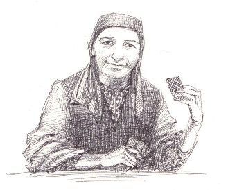 And Grandma liked to play cards, especially with her children and grandchildren, so she suggested her favorite entertainment. Her eyesight was poor, so she held the cards close to her eyes, squinting at each of them. She clicked her tongue, smiled, rocked from side to side and mumbled, “Ibi basardroya. I na bin. (Damn it. Just look at this.)” She cast cunning glances at us, as if to say, “Oh my, I think I’m in trouble.”