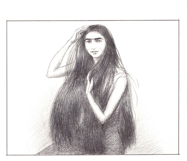 I liked to watch Mama comb her hair. Seated at a small round mirror, Mama would slowly comb her hair, one strand after another. It streamed and shone even in the light of the dim bulb that lit Mama’s bedroom. She would stick the comb into her thick hair at the top of her head and drag it slowly down a strand to its very end. She did it over and over again, until the strand became elastic, until every hair separated easily from the next. Only after that did she begin on the next strand.