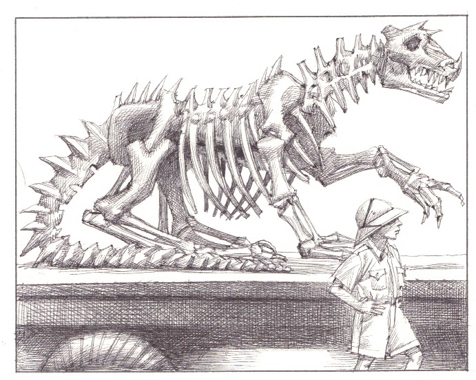 My colleagues and I will dig in the sands of the Sahara for many months, excavating that monster, bone by bone. I will grow dark skinned like a Papuan. I will put the dinosaur together and bring it to Chirchik. I’ll ride in a huge truck through the main streets of our town to the sound of fanfares. My dinosaur will be on the bed of the truck, and I will stand next to it. The city council will declare that the dinosaur will remain in town for good. It will naturally be installed on the playground near my building. Oh, how boys from neighboring buildings will envy me!