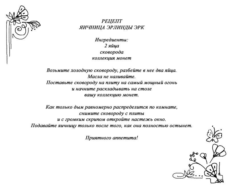 Как только дым равномерно распределится по комнате, снимите сковороду с плиты и с громким скрипом откройте настежь окно. Подавайте яичницу только после того, как она полностью остынет.