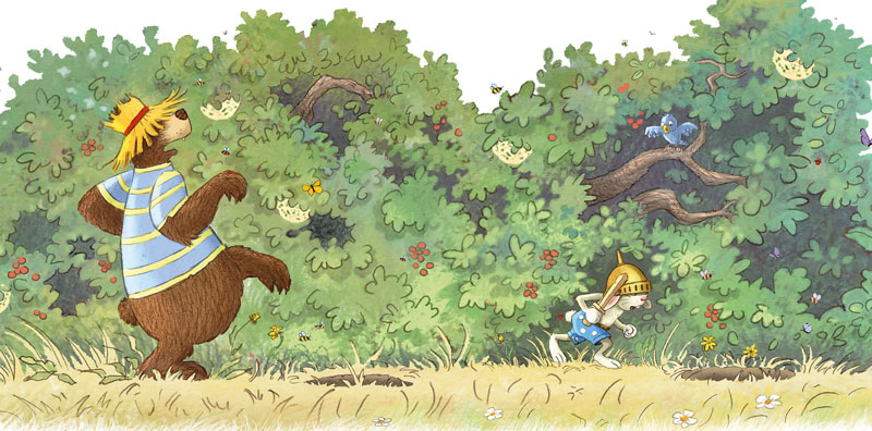 Заяц храбро прыгал впереди. Медведь крался сзади и пытался отвлечь себя мыслями о вкусном печенье.