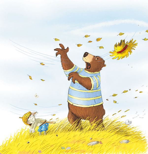 И в этот самый миг порыв сильного ветра сорвал с головы Медведя его соломенную шляпу.