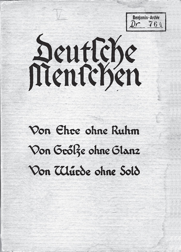 Обложка антологии писем В. Беньямина «Люди Германии» (Vita Nova Verlag, Luzern, 1936)