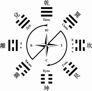 Восемь техник соответствуют восьми сторонам света. Восемь сторон света – это восток, запад, юг, север, юго-восток, северо-восток, юго-запад и северо-запад. Пэн, люй, цзи и ань выполняются в направлениях четырёх сторон, соответствующих основным направлениям: восток, запад, юг и север. Цай, ле, чжоу и ань выполняются в направлениях четырёх углов квадрата, соответствующих промежуточным направлениям: юго-восток, северо-восток, юго-запад и северо-запад (схема справа).