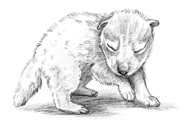 – Здравствуй и ты, малыш Лобастый, – шепнула волчица и приветственно облизала второго сына. За ним появилась Большеногая, его сестричка, а последним – ещё один мальчик, получивший имя Пятнистый за небольшое бурое пятно на боку. Волчица как следует вылизала новорождённых и позаботилась о том, чтобы все они нашли соски и досыта наелись. Спотыкаясь друг о друга, малыши кое-как доползли до материнского живота и уткнулись в него мордочками.