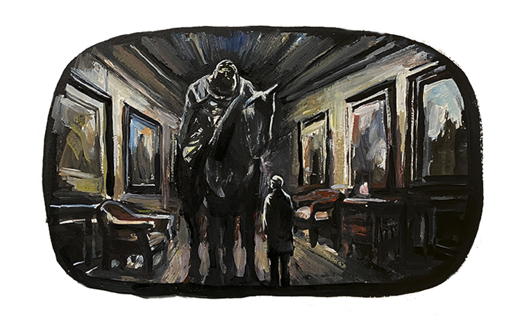 Только вставив ключ, чтобы закрыть дверь приёмной, он почувствовал затылком – закрывать рано, явился ещё один гость. Холод усилился. Он обернулся. В конце коридора приёмной возвышался чёрный силуэт, заполняющий всё пространство от потолка до пола – Фьёр на коне. Старику показалось, что тот целится из лука, но нет – это была просто игра бушующей гривы и развевающихся на ветру тряпок. Хотя воздух в коридоре приёмной совсем не двигался.