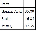 "One hundred parts of borax may be said to consist of:—