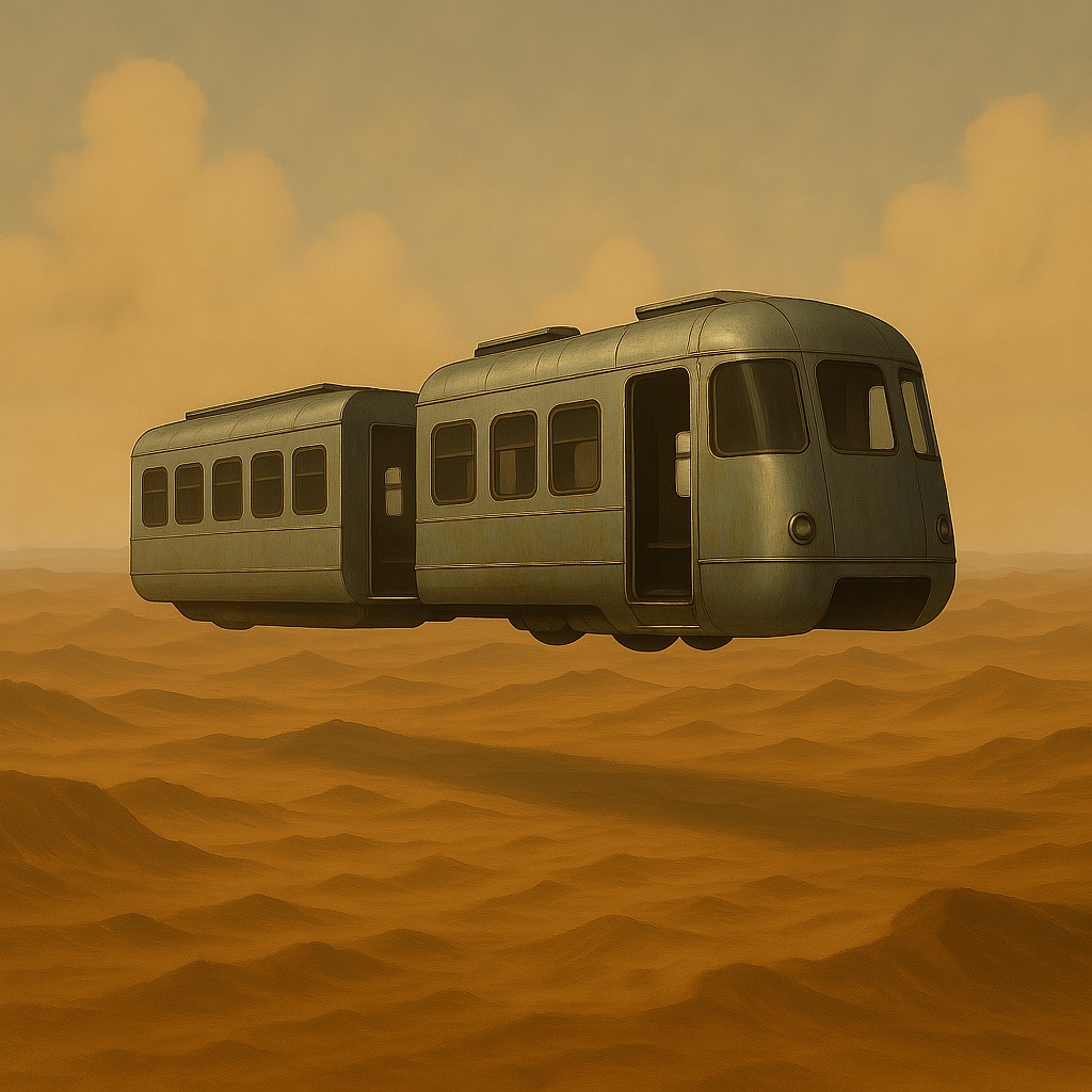 Утром решили идти в направлении движения поезда. Куда-то они же ехали? Немного прошли, когда услышали шум сверху. Подняли головы силясь рассмотреть. Маленький поезд был в воздухе и летел к нам. Стали бросать по нему палки, но те не долетали. Зато с поезда стали светить лучом и много наших погибло. Остальные вкопались в песок. Пронесло! Когда воздушный поезд улетел, стали рассматривать погибших. Многих прожгли напополам. Ужас! Некоторые психанули – оно того стоило? Решили до следующего утра прятаться.