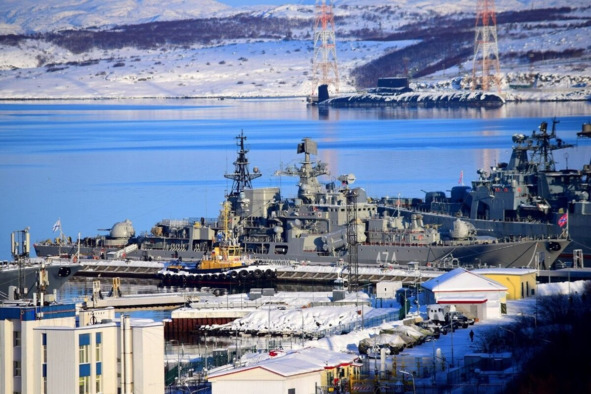 С высоты сопки прямо перед нами открылась панорама Кольского залива – огромной бухты с пришвартованными к пирсам большими противолодочными кораблями, эсминцами пятьдесят седьмого проекта с вертолетными площадками на юте и огромный крейсер «Мурманск» стоящий на рейде. А на другой стороне бухты подводные лодки, принимающие боезапас с нависшими над ними подъёмными кранами. Вот два БДК – большие десантные корабли, напоминающие гигантские галоши или огромные ботинки клоунов в цирке, стоящие носом к берегу.