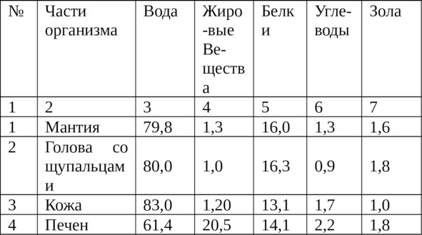 Химический состав японской каракатицы.