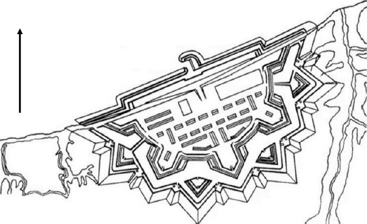 Фанагорийская, или Таманская крепость представляет собой систему фортификационных сооружений, называемых «бастионной системой укреплений». Бастион – пятиугольный выступ перед оборонительным валом, который позволяет вести огонь по противнику, наступавшему на валы (куртины) крепости. В проекции крепость имеет коронообразную форму и отдаленно напоминает Петропавловскую крепость в Санкт-Петербурге. Фанагорийская Таманская крепость обращена хордой к обрыву Таманского залива.