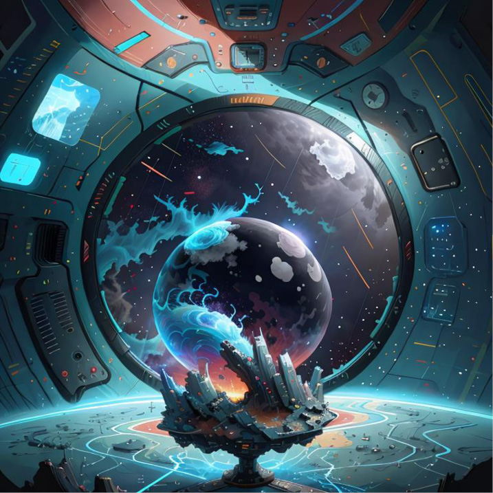 Через несколько часов полета они заметили таинственную планету, которую никогда не видели раньше. Это была планета разных цветов: красивый ярко-зеленый лес, горы красного цвета и голубое небо, усыпанное блестящими вспышками.