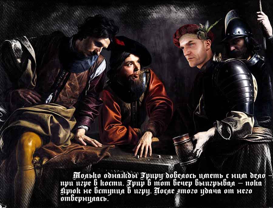 Только однажды Гриру довелось иметь с ним дело – при игре в кости. Грир в тот вечер выигрывал – пока Крюк не вступил в игру. После этого удача от него отвернулась. Уже на четвертой сдаче Грир заметил, что Крюк подменил кости своими, шулерскими, и сломал красное перо на его шляпе ударом керамической кружки. От расстройства мошенник потерял сознание и свалился под стол.