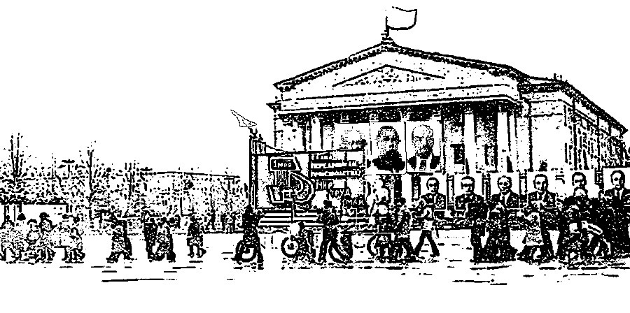 К назначенному часу из сквера и всех дворов, уголков, закоулков и улочек начали стекаться люди и выстраиваться в стройную колонну на участке улицы Маяковского, ведущую в сторону Площади Ленина. Старшие колонн с табличками аббревиатур названий предприятий или отделов созывали своих сотрудников построиться. Заняв своё место в строю, люди в основной своей массе замолкали. Родители шикали, приложив палец ко рту, стараясь успокоить своих детей. Совсем маленьких брали на руки или сажали на плечи. Галдёж постепенно сходил на нет.
