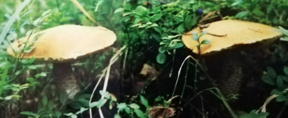 Почему желто-бурый подосиновик назван именно так, для меня – загадка. Желто-бурый моховик понятен – шляпка желтая или светло-коричневая, трубчатый слой темно-бурый, а у подосиновиков шляпки – от ярко- до темно-желтых, оранжевые или красновато-желтые, а буроватыми или коричневыми бывают исключительно редко. У молодого гриба поверхность шляпки слегка бархатистая, у более взрослого – гладкая. Ножка никогда не бывает столь толстой, как у некоторых подвидов красного, но и тонкой, как у ярко-красных белоногих обитателей осиново-березовых молодых рощ, мне не встречалось. Трубчатый слой чисто белый и мелкопористый, что характерно для всех видов подосиновика.
