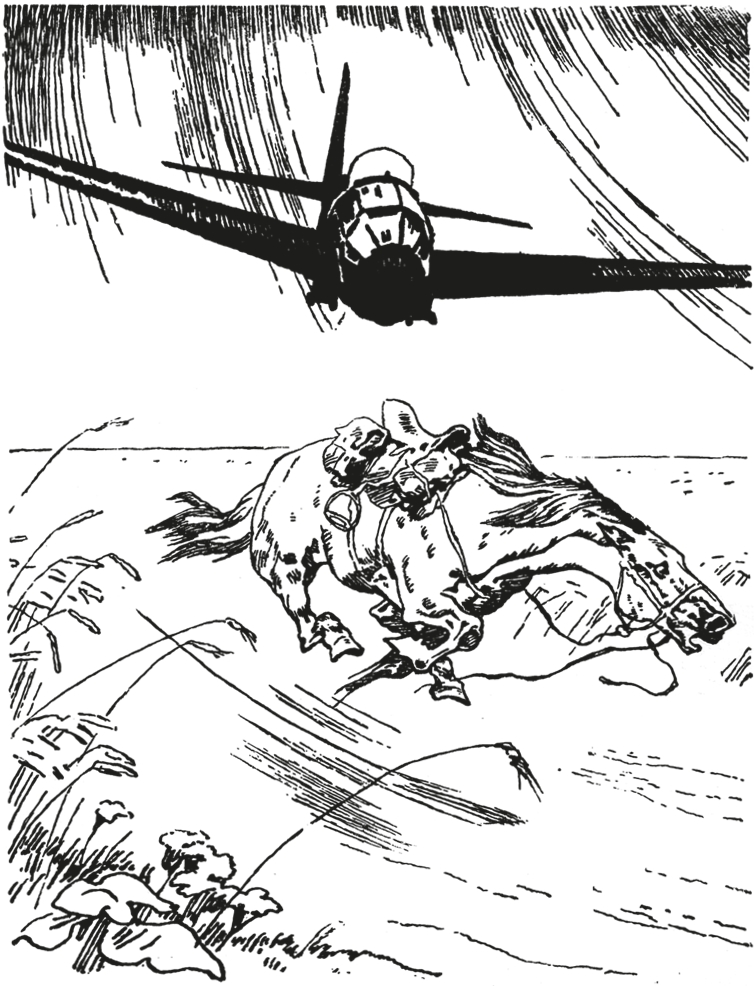 После этого немецкий летчик решил расправиться и с белым конем, который ожидал своего хозяина у кустика. Сделав над ним круг, летчик дал очередь из пулемета. Летчик не заметил во ржи двух наших автоматчиков. Они ударили по «мессеру» бронебойно-зажигательными, он врезался в землю и взорвался. А ваш белый конь помчался по дороге…