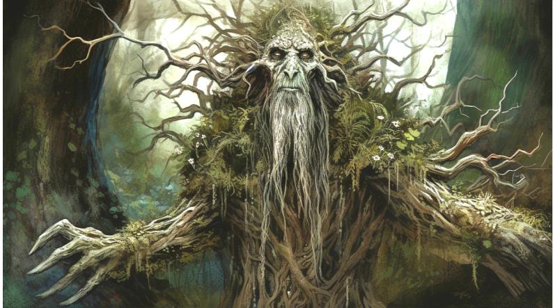 Сухое, кряжистое, с руками-ветками, с которых временами опадали листики и с глазами прямо на стволе. Причём глаза были не круглые, а вертикального разреза, между которыми располагался рот с торчащими во все стороны острыми веточками зубами.