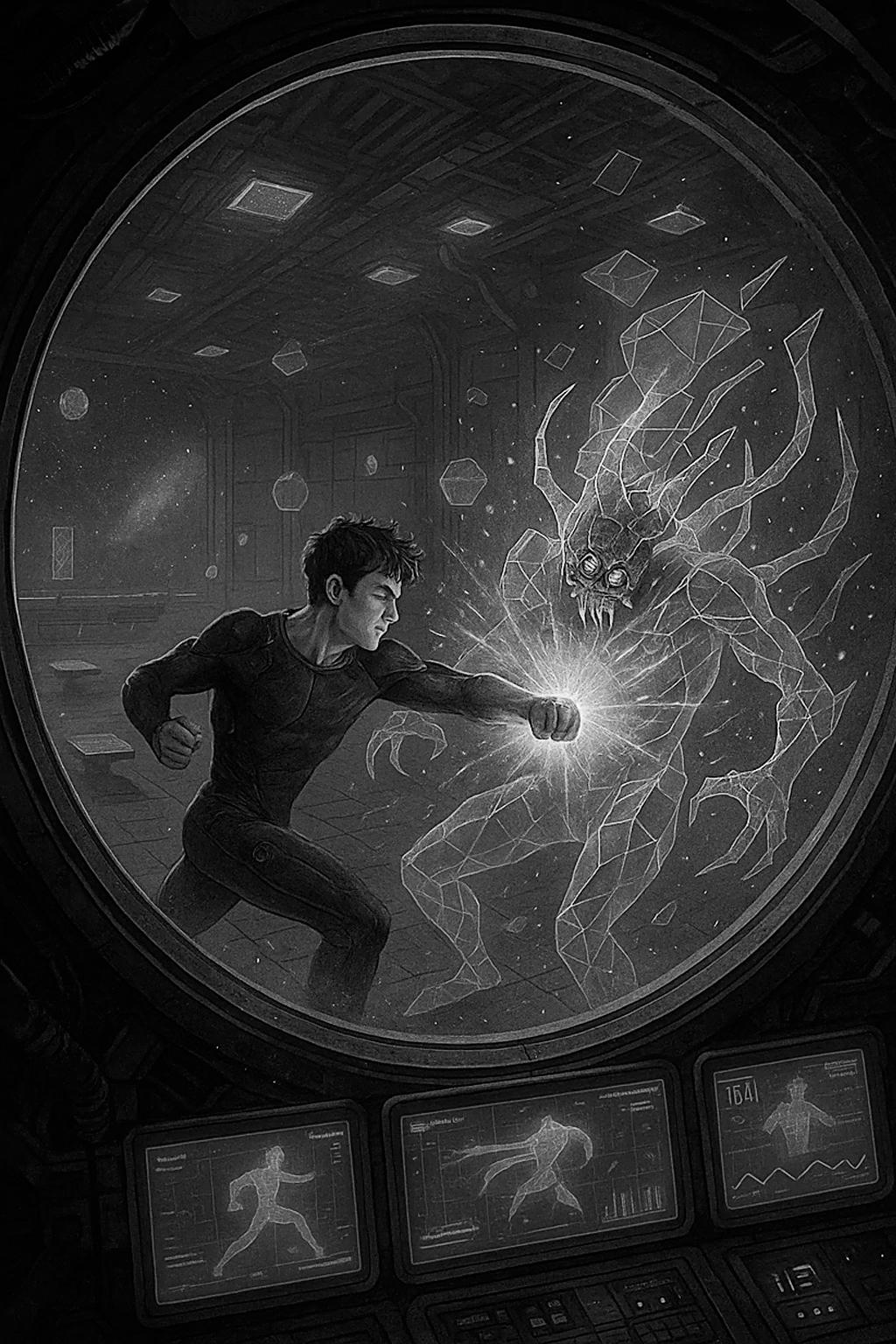"Skyla, run combat mode again," I ordered, wiping sweat from my brow.