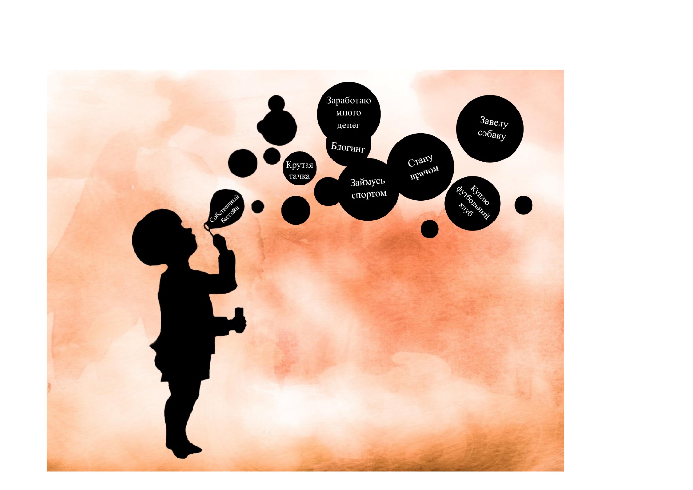 Думаю, шаблонные фразы типа «когда же вы женитесь / выйдете замуж?», «когда будете заводить детей?», «когда за вторым?» хоть раз в жизни слышали все. Тот, кто спрашивает, исходит из соображения, что вы похожи на него и действительно обо всём этом мечтаете. Понятно, что это шаблонное мышление. Если вы заявите, что не собираетесь делать ничего из вышеперечисленного, это вгонит вашего собеседника в ступор. Как же так!? Все об этом мечтают, и ты тоже обязан (а) об этом мечтать. Та самая сила визуализации, вокруг которой всё крутилось в знаменитом фильме «Тайна», поможет вам избавиться от общественных целей и услышать себя. Та методика планирования, которая была приведена выше, поможет вам достичь того же эффекта. Если вы пропишите основной целью какую-то общественную мечту, которая на самом деле не ваша цель в жизни, то на следующих этапах вы не сможете достойно планировать. Углубляясь в планирование, вы будете рассматривать цель под микроскопом, раскладывать её на составляющие и рано или поздно зададитесь вопросом: а зачем мне всё это? Например, в СССР многие девочки мечтали стать балеринами, не догадываясь, какая у балерин диета и как будут выглядеть их ноги без пуантов. Если бы они это могли прочувствовать (провизуализировать, так сказать), возможно, их очередь в балетные кружки сильно бы сократилась. То же самое произошло бы и с мальчиками, которые мечтали стать космонавтами, если бы они реально представили себе, что им придётся фильтровать собственную мочу. Отличить собственные мысли от общественных достаточно просто. Вспомните, как вы пришли к этой мысли? Я хочу услышать от вас всю логическую цепочку. Сомневаюсь, что в 18-20 лет кто-то аргументировано объяснит, как он «решил» создать семью, не имея образования, нормальной работы и собственного жилья. Я не против создания семьи. Я за то, чтобы к этому решению вы пришли самостоятельно.