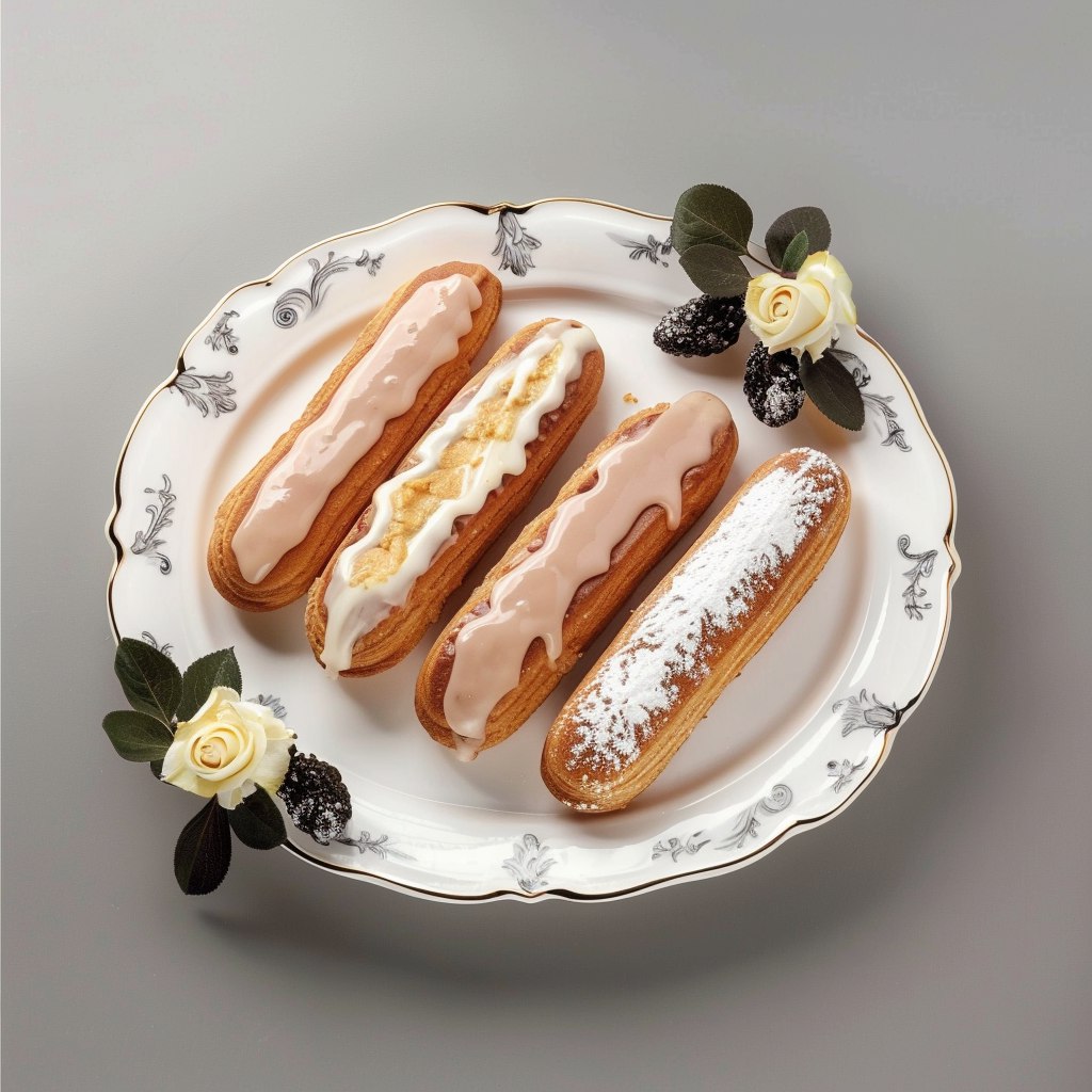Эклеры – это десерт, который можно подать как в классическом, так и в креативном стиле. Украшение эклеров позволяет экспериментировать с начинками, глазурью, декором и формой, превращая их в настоящие произведения искусства. Вот несколько вариантов подачи и украшения эклеров: