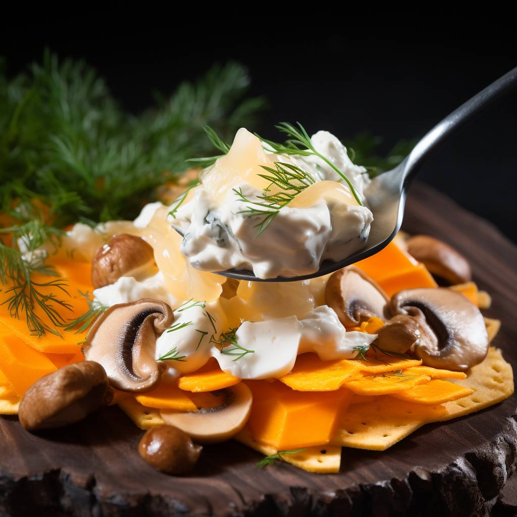 Этот нежный грибной салат станет отличным украшением праздничного стола. Сочетание сытных белых грибов, ароматных шампиньонов, хрустящих крекеров и сладковатого батата создаст изысканный вкус.