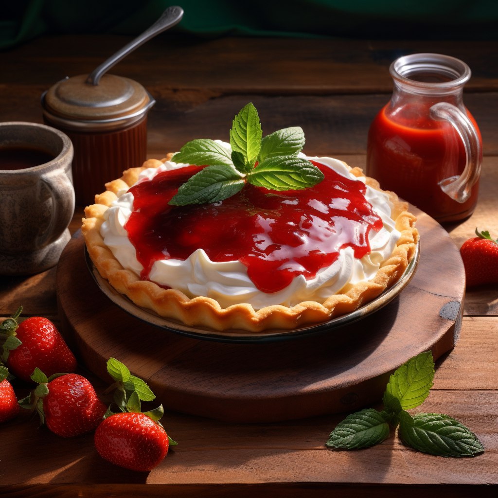 Этот пирог заливной с клубничным вареньем и базиликом в духовке представляет собой нежное сочетание сладкой клубничной начинки и ароматного базилика, завернутое в хрустящее тесто.