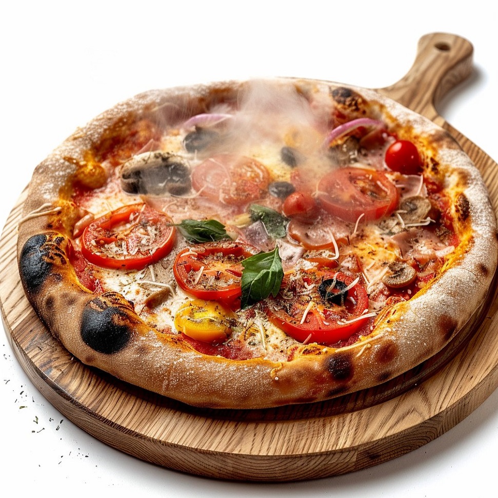 Пицца Маргарита – это классическое итальянское блюдо, которое отличается простотой и гармонией вкусов. Она состоит из тонкого теста, томатного соуса, свежей моцареллы и листьев базилика, что символизирует цвета итальянского флага: красный, белый и зелёный. Легенда гласит, что пицца была создана в 1889 году в честь королевы Италии Маргариты Савойской. Именно благодаря сочетанию свежих и качественных ингредиентов "Маргарита" приобрела мировую популярность как эталон традиционной итальянской пиццы.